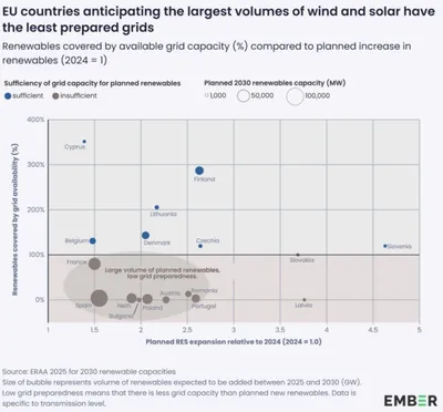 Ember analysis indicates that transmission and distribution network constraints across Europe are jeopardising 120 GW of intended renewable energy capacity. These infrastructure bottlenecks impact the feasibility of both large-scale utility projects and smaller residential solar installations in the most affected nations.